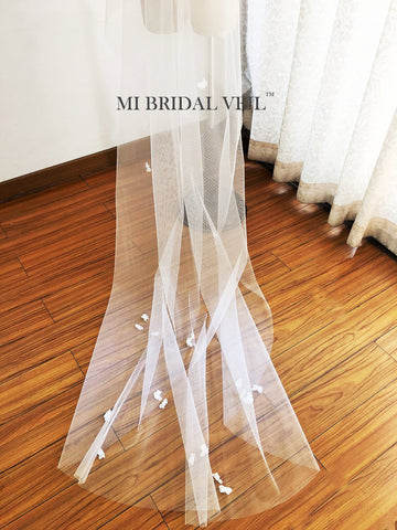 Cathedral Lace Wedding Veil, Lace Appliqués Bridal Veil w Blusher Veil, Mi Bridal