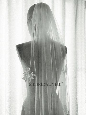All Mi Bridal Veils are hand stitched on edge of soft tulle with an invisible thread for couture quality. Veil is sewn with metal comb according to its style.